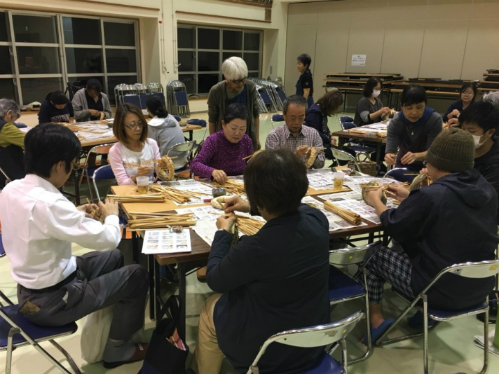 講座では、村の歴史や文化財、方言の特徴、年間行事、それらで歌われる歌や日本最古の全身遺骨が見つかった竿根田原遺跡等について学び、また民具づくりも体験しました。