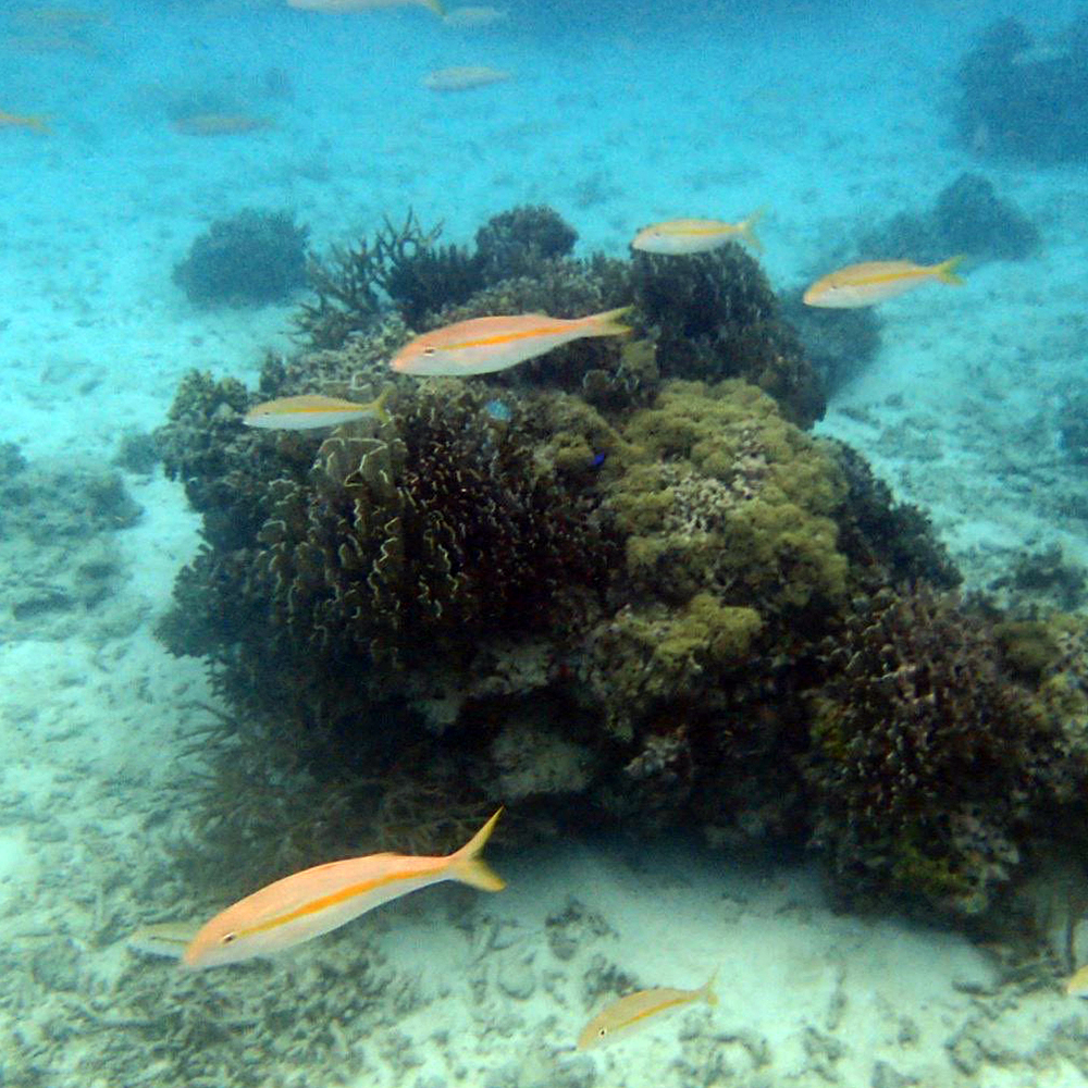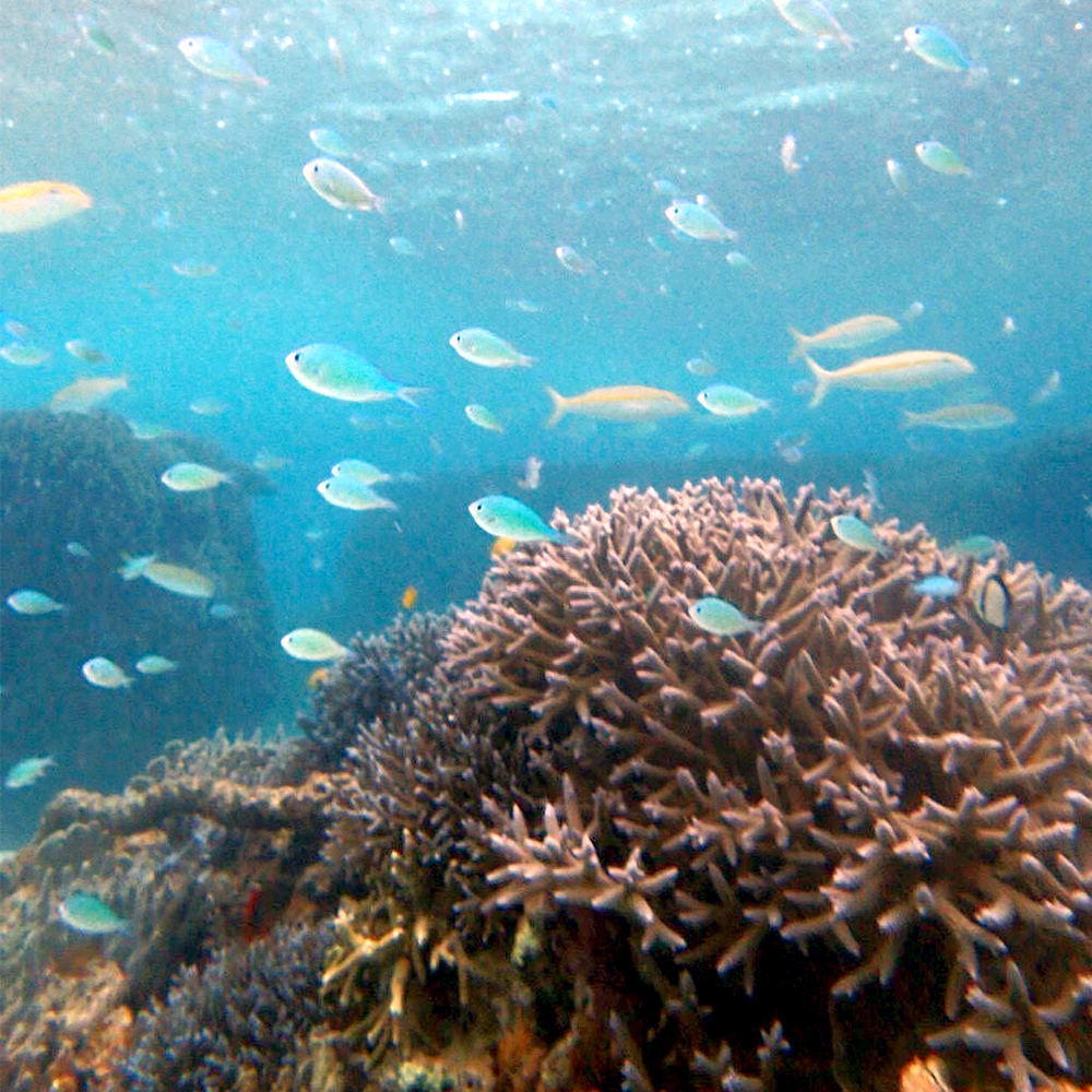 白保の海には120種以上のサンゴと、300種以上の魚などが生息しています。沖縄では大雨や台風時に、河口から海が赤く染まることがあります。赤土とは、粒子が細かい土のことで、川から海に流れ出た赤土は、サンゴをはじめとする多様な生物の生息に悪影響を及ぼします。