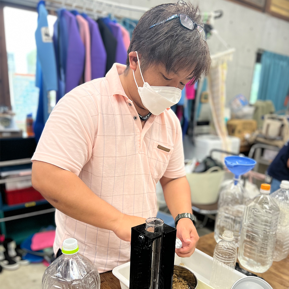 白保のサンゴ礁の状態を自分たちで把握するため、NPO夏花は白保魚湧く海保全協議会と連携し、年に4回、海底の赤土堆積量を測定しています。